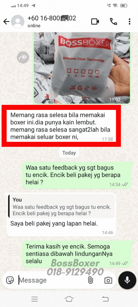 Sebaliknya, jika anda mula memakai BossBoxer anda akan merasa 3x lebih selesa.
